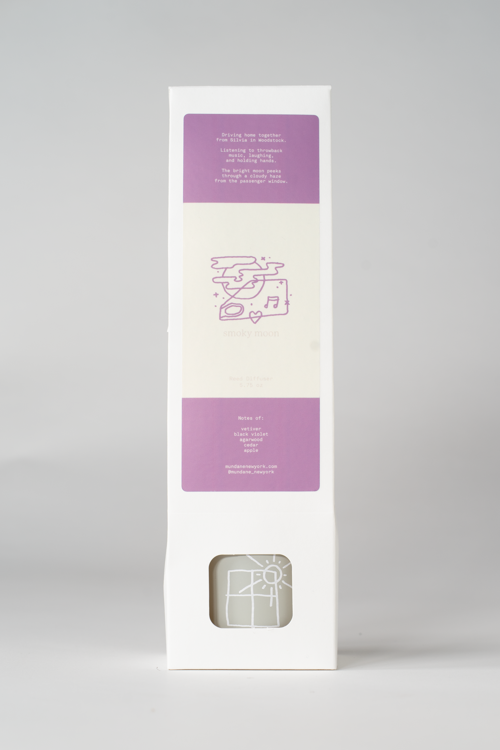 smoky moon has notes of agarwood, amber, black violet, apple, cedar, vetiver + cinnamon.